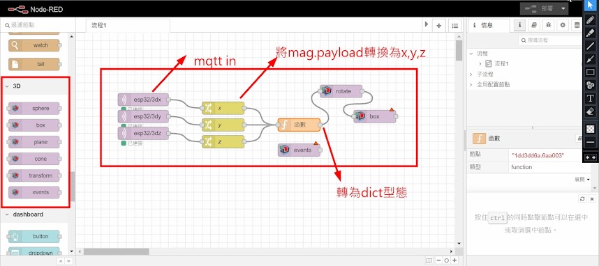 mpu6050螺陀儀+3D物件(node-red)-esp32